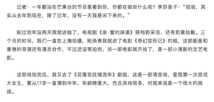 然而,接下来的一年时间里,李莎旻子并没有去“学习”,而是在4个剧组里连轴转。
