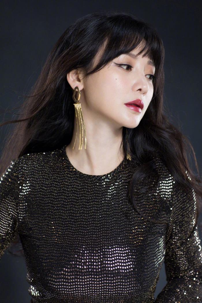 闪光的珠片本就闪耀,配上长条的金色吊须耳环,瞬间让你成为焦点。珠片单品一般不适合日常穿着,常用来作为一些聚会或是时尚活动的战服。柳岩也许就是为了参加类似活动,当日她化了一个比较低调的晚妆,浅棕色眼影,搭配复古的暗红色口红,稍显夸张的眼线,魅惑的眼神,总攻气息满分。