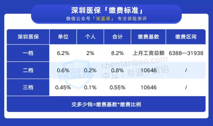 话不多说,我们整理了深圳医保 3 个档次的缴费标准,如下表: