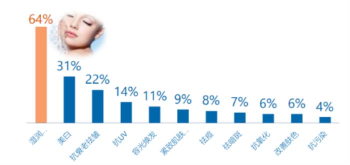 水对于完美肌肤的作用是毋庸置疑的。婴儿肌肤的含水量为25%,因而光滑细腻而富有弹性,而成年女性特别是都市女性的肌肤含水量已降至15%,甚至更低。补水保湿一直是护肤品热门宣称,同时也是是消费者的第一需求。