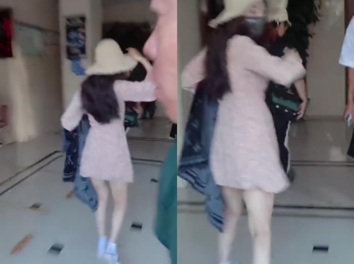 后来走了一半,张含韵回头发现代拍者还在原地蹲拍,她直接从走改为小跑的状态,想快速离开代拍者镜头视线,因为幅度过大险些走光。嘴里嘟囔着什么听不太清,但看下车后的神色,张含韵的心情应该是十分苦恼。