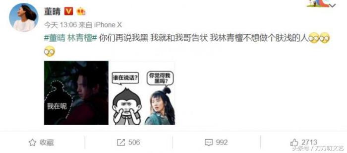 结果被扮演林青檀的演员本人翻牌子了:“你们再说我黑,我就和我哥告状,我林青檀不想做个肤浅的人。”