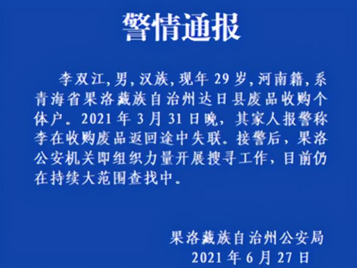 正当网友们替李双江捏了把汗时,这条网传的爆料很快就被警方辟谣。据警方的通报显示,失踪的“李双江”只是同名,而非知名歌唱家李双江本人。失踪的李双江今年29岁,河南户籍,是一名废品回收的个体户,失踪原因未知。早在3月31日晚,其家人就已经报案,但截至6月27号为止仍然没有找到人,在这里还是希望能尽快找到失踪者。