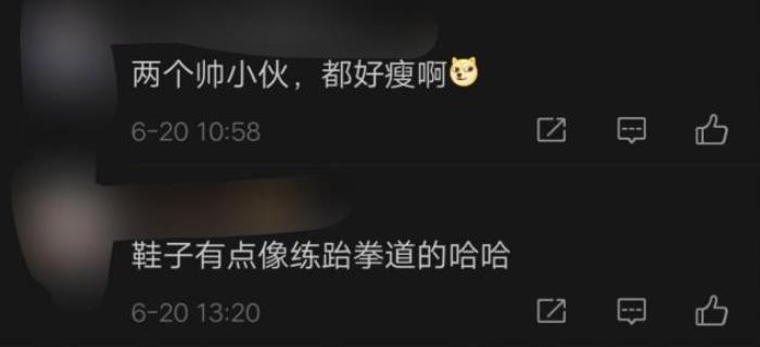 网友们也纷纷在评论区夸赞两人好瘦好帅,还有网友从两人穿的鞋子猜测他们是在练跆拳道。