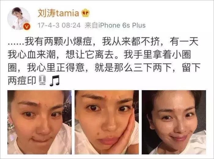好多女明星也被痘痘的问题困扰,在微博上各种吐槽。