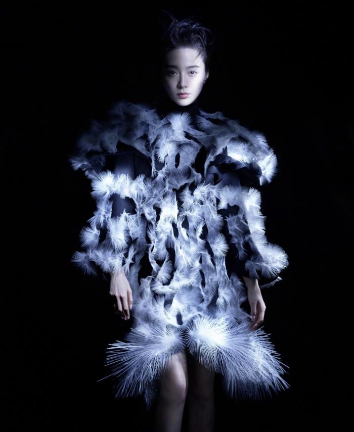 我们一起来看看,范冰冰那些时尚又高级的造型。范冰冰身穿黑白相间色的元素相结合羽绒礼服,高级又时尚,黑色和白色搭配,本身就是百搭色调,礼裙又是以这两种色调结合在一起,这裙身白色是以羽毛来设计而成的,环绕在裙身至裙摆的位置,呈现出一种摩登女郎的气息,加上范冰冰精致的面容,凸出了她自身的气场。