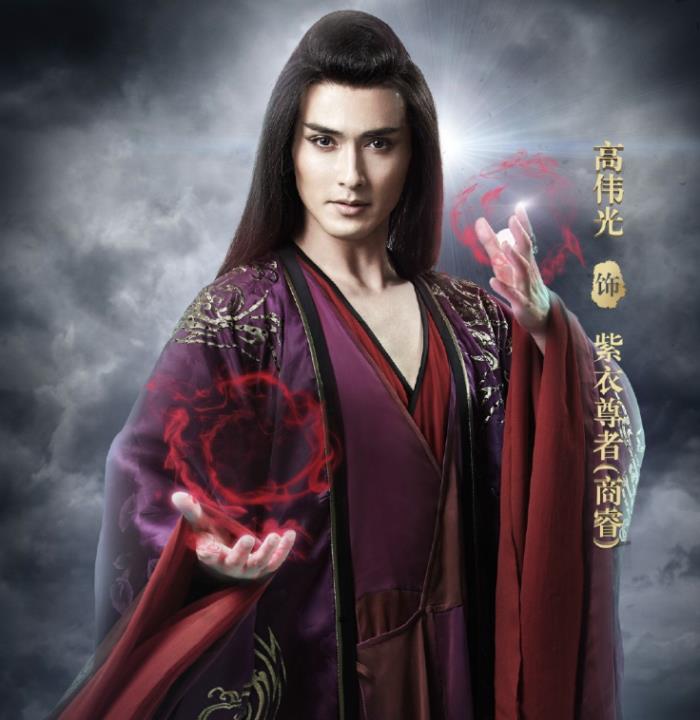 高伟光曾在《轩辕剑之汉之云》中饰演紫衣商睿,同样的紫衣配上魔鬼眼线,魔鬼阴影,魔鬼眉笔,还搭配了v字领,竟然略带几分娇媚和娘气。