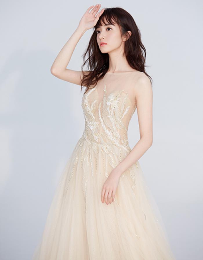 近日,演员胡冰卿曝光一组唯美梦幻写真,久违的长发造型温婉恬静少女感满满,一袭香槟色曳地长裙,楚楚动人散发浪漫气息,修身的设计勾勒美好身形,若隐若现的轻纱衬托出少女独有的温柔气质,仙气十足!