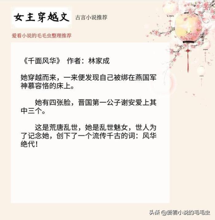 大家好,我是毛毛虫,十年书龄小仙女,每天为大家推荐各种好看的言情小说。希望大家能够喜欢,喜欢的话可以分享给朋友,或者收藏起来。若大家有什么想看的书,可以在下方留言哦。本期整理的是盘点十本经典穿越言情小说,一刷顺眼,二刷顺心,七八九刷已常态