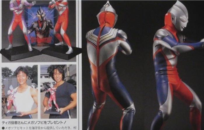 其实,迪迦奥特曼的皮演有两个人,除了权藤俊辅之外,另一个就是中村浩二。上面迪迦的杂志介绍图中,可以看到除了权藤俊辅拿着迪迦的手办之外,还有一个人也拿着迪迦的手办拍照,他就是中村浩二。中村浩二身高180cm,虽然比权藤俊辅矮了一点,但是扮演迪迦问题不大,看起来依旧很帅气。