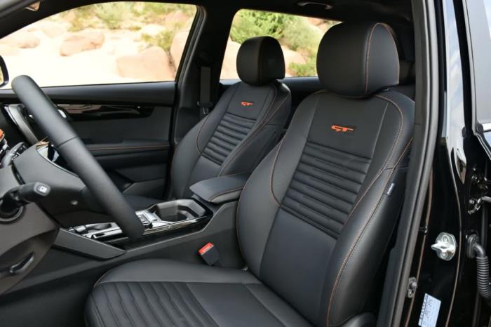 1.5T GT-Line版本以黑色为内饰主色调,中控台区域还配以橙色皮革装饰做点缀,进而带来更加鲜活的气息。而2.0L版本则采用的是黑棕拼色内饰搭配,整体风格更偏沉稳。