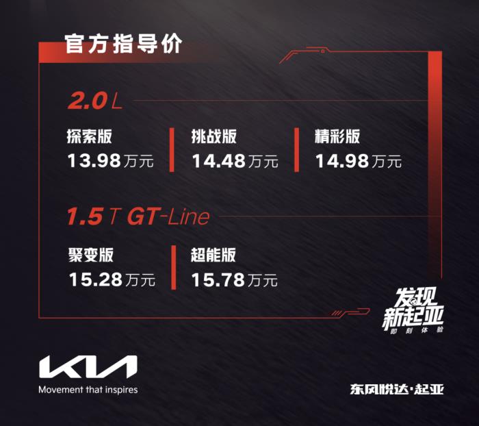 【有车以后 新车】7月12日,东风悦达起亚智跑Ace正式上市,新车共推出5款车型,指导价13.98-15.78万元,并提供多媒体包、科技包、智行包、ETCS多种选装包选择。与此同时,东风悦达起亚官方还公布了一系列购车优惠政策,即日起至8月31日,购车用户可享“0首付/0利息”、“免费保养3年6次”等购车福利。