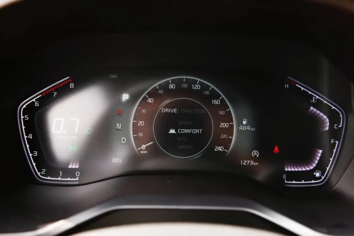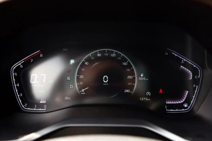 仪表由两侧的数显以及中间的7英寸液晶屏组成,显示效果清晰,同时显示屏UI还能根据不同的驾驶模式进行切换。