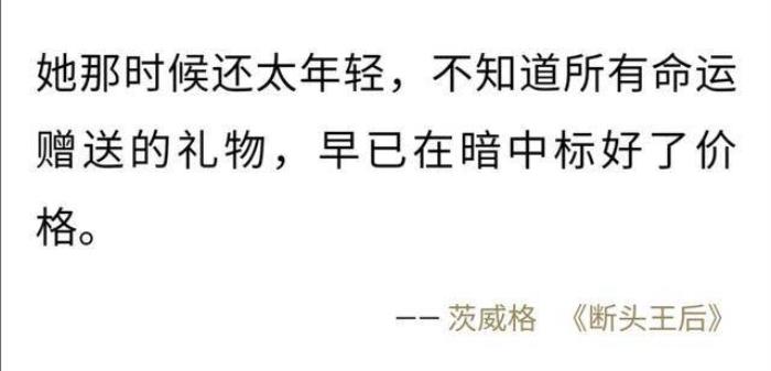 茨威格在小说《断头皇后》中说过这样一句话:“她那时候还太年轻,不知道所有命运赠送的礼物,早已在暗中标好了价格。”年轻的我们总以为命运可以糊弄,偶尔还能为自己侥幸获得的东西沾沾自喜。其实,天上掉下来的馅饼,还是多加小心的好。