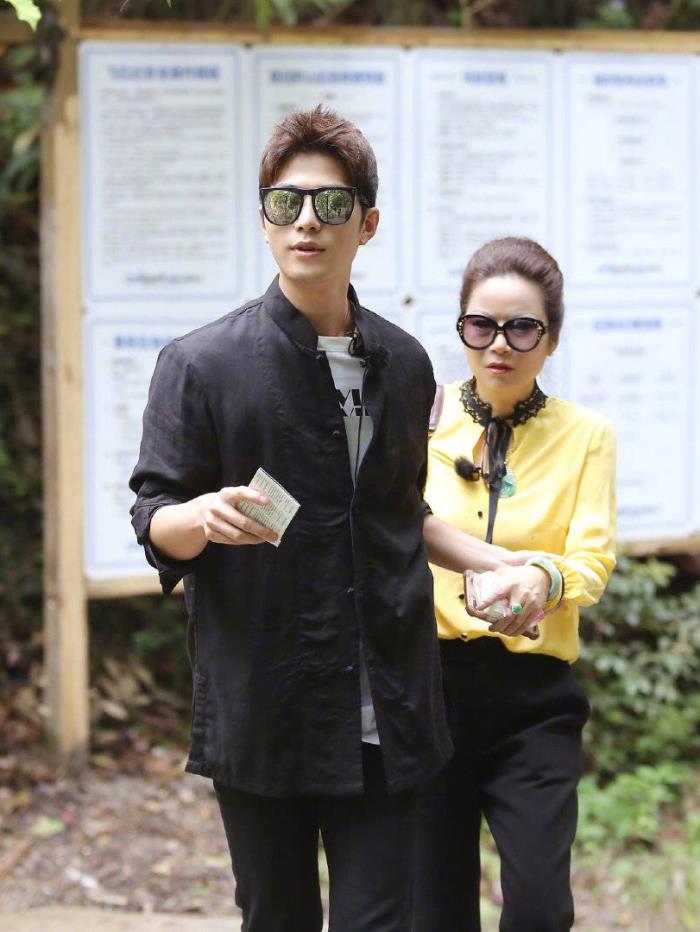 陈学冬经常喜欢和大姨在一起,毕竟这位大姨身材好,气质佳。两人都戴着墨镜看,看起来气质满满。陈学冬内搭白色T恤,外搭深蓝色衬衫,只系了两个扣子,这种扣子若隐若现彰显着时尚,下半身随意搭配黑色裤子。