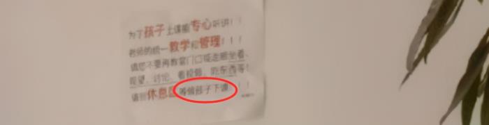 将照片背景墙面上的贴纸放大显示,清晰可见上面写道“为了孩子上课能专心听讲,老师的统一教学和管理,请家长到休息区等候孩子下课”。看来跟素人家庭的孩子一样,李思思夫妇周末也得陪着小朋友一起来培训班上课,等候期间实在太无聊,李思思便索性看起书来。