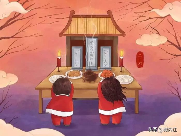 中国农历有大小月之分,所谓大月是三十日,小月只有二十九日。所以遇到腊月为小月,二十九这一天就是这一年最后一天。那么腊月二十九就是除夕了,即使不是小月,次日就是除夕,所以过年的各种准备活动都要在这天进行完。在整个年节中,二十九这天可以说是最忙碌的一天,除了筹备年节中的各种衣食祭品,还有一项极其重要的活动“上坟请祖”。所以年谣称“腊月二十九,上坟请祖上大供”。