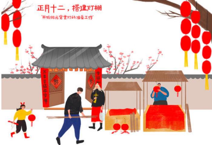 正月十二是中国传统农历节日之一。这一天的中国民俗活动有藏剪刀,收旧鞋,捏老鼠嘴,搭灯棚等。从即日起人们开始准备庆祝元宵佳节,选购灯笼,搭盖灯棚。有童谣云:“十一嚷喳喳,十二搭灯棚,十三人开灯,十四灯正明,十五行月半,十六人完灯。”