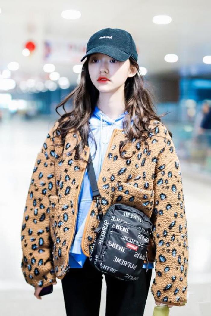 首先,林允在内搭的时候,不是选择普通的针织衫或者毛衣,而是内搭了一件蓝色的连帽卫衣,我们知道,蓝色的连帽卫衣是比较显年轻的,刚好把这件棕色外套的俗气感给中和了一下。