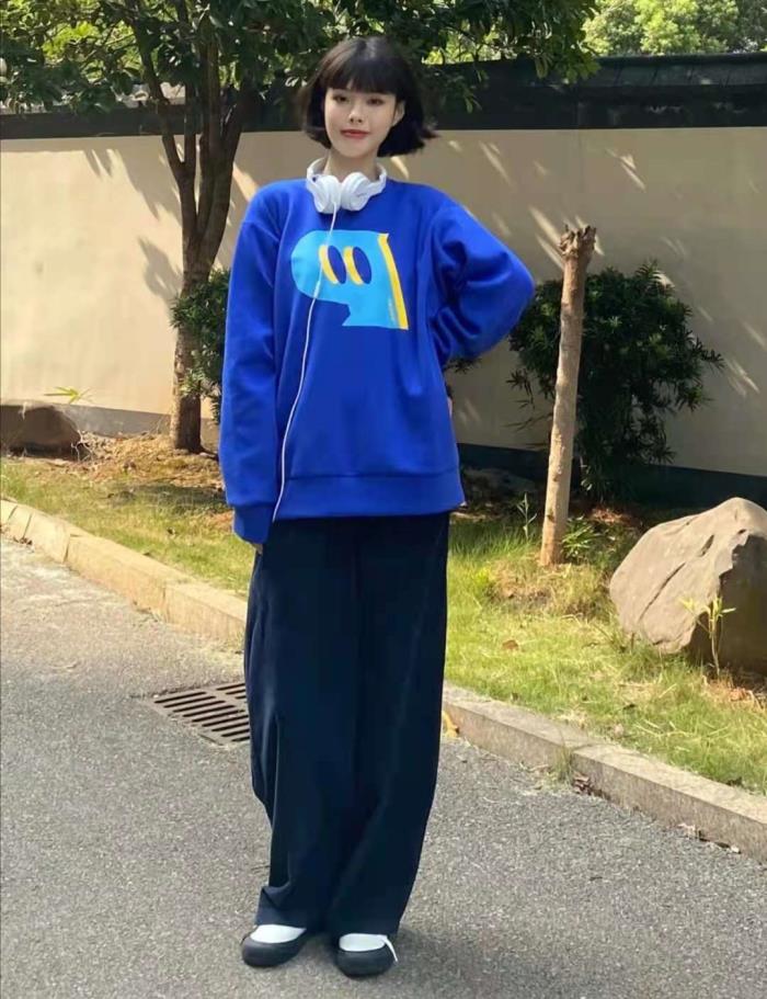 最近的天气一直很不错,正是穿卫衣的好时节,这个宝蓝色卫衣上身好显白,减龄的同时兼顾可爱,下半身选择搭配的裤子是灯芯绒的材质,黑色的阔腿裤,裤子的包容性很强,而且非常的好穿,不过不太适合比较矮的姐妹。