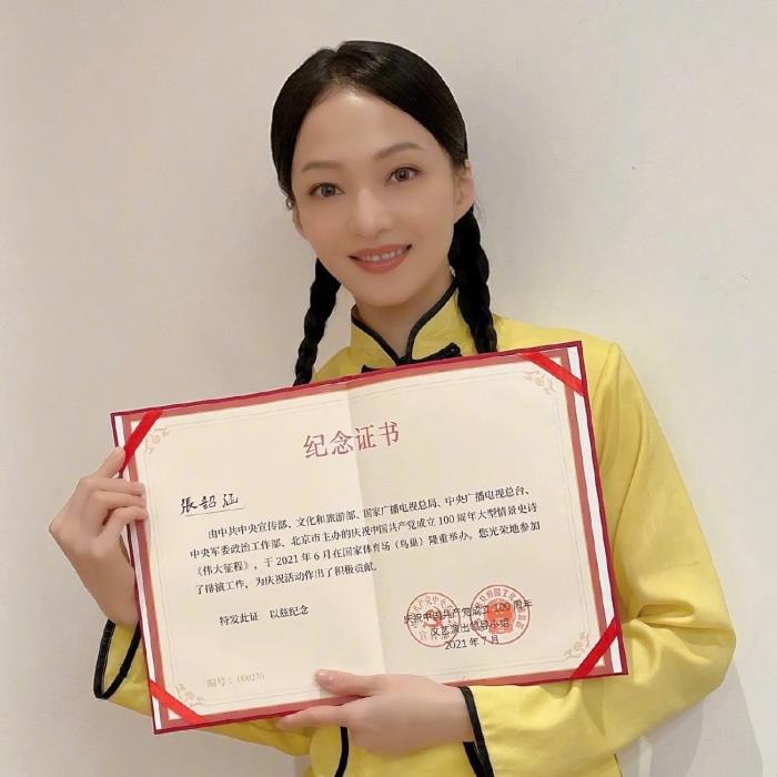 和成龙合唱《保卫黄河》后,台湾绿媒指责她“矮化台湾”,张韶涵霸气地晒出了手捧建党百年演出纪念证书的照片,仿佛在回应: