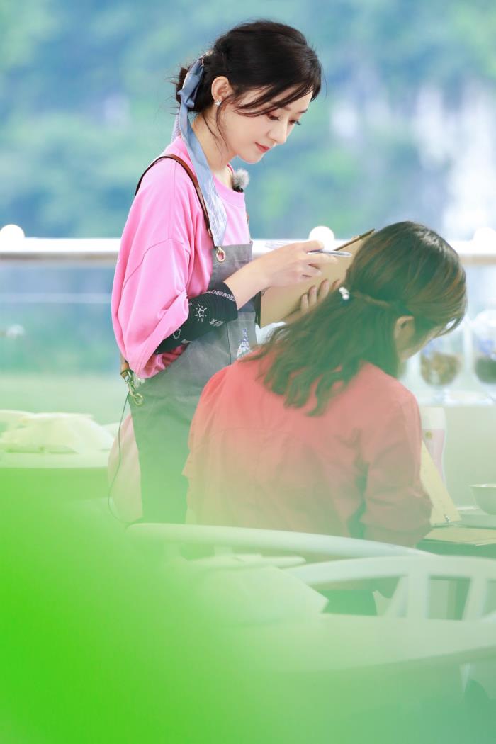赵丽颖是用白色做底,精致的小叶子和小花朵作为装饰图案,整体给人淡雅、自然、亲和、细腻的效果,很符合她个人的气质。