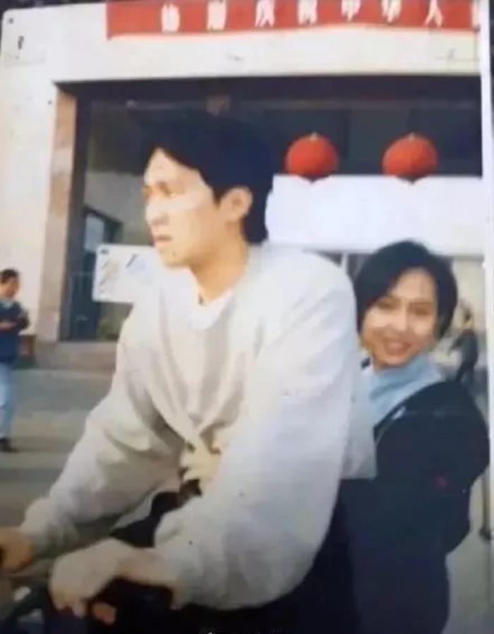 照片里,朱茵紧紧搂着周星驰的腰,笑靥如花。