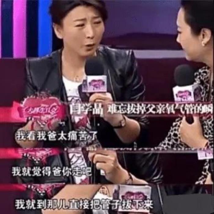 父亲苦苦哀求闫学晶为他拔掉氧气管,实在是太痛苦了。看到父亲这样难受,闫学晶只好狠心拔掉了父亲的氧气管 ,父亲的离世也成为了她一生的痛。