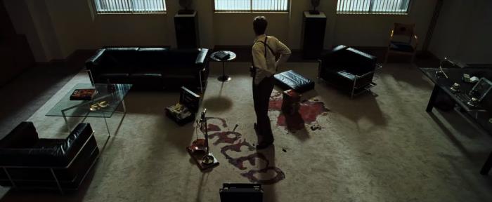 凶手在杀过一个过度肥胖者后,在墙上写下了暴食二字。萨默赛特意识到这是《神曲》中七宗罪的一项,很有可能是连环杀人案。