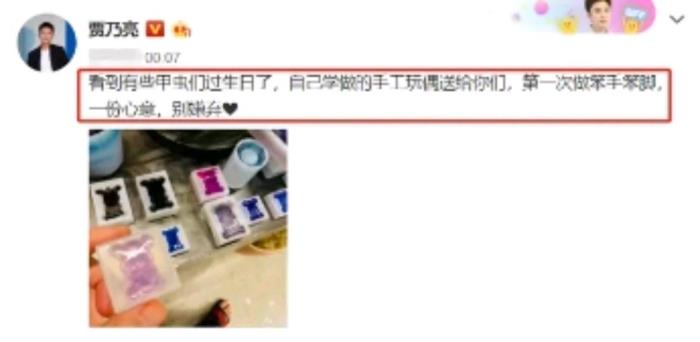 还有一点,这里必须要说明,贾乃亮是很关注粉丝们的,他用这种最接地气的方式回报粉丝对他的爱,亲手给粉丝们制作甲壳虫礼物,可见粉丝在他心中的位置。
