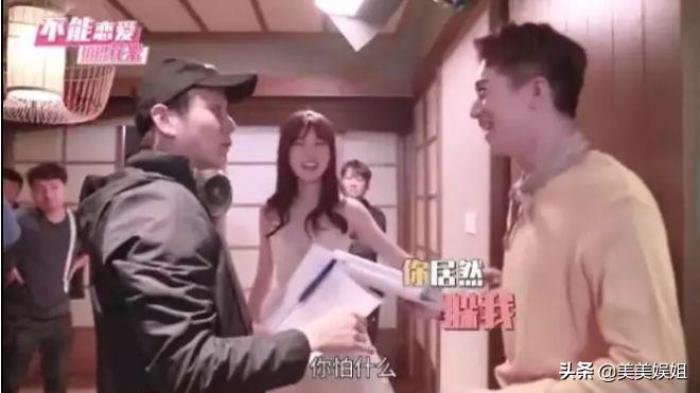 在电影院男主和男二有场搞笑的“吻戏”,也得到了导演的超近距离亲身指导。一旁围观的乔欣就差“哟哟哟”出来了~