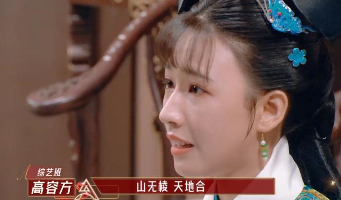 此次在节目中出演“紫薇”,清装旗头扮相温婉秀丽,最为难得的是会运用眼神来表现情绪。刚开始时高容方的节奏不是很对,对于这类戏估计也没有太多了解,张嘴就管张铁林叫“皇上”,而不是“皇阿玛”,礼仪方面也有所欠缺,但她始终都在自己的角色里,惹得弹幕网友频频夸赞有灵气。