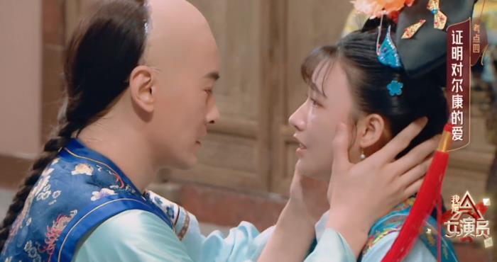 即兴表演的考点虽然是给演员出难题,可表现好了,就分外精彩,高容方就是如此。卡着剧情点,郑元畅饰演的尔康让紫薇说出彼此的海誓山盟,高容方说完“山无棱,天地合”,郑元畅却说不是这个,而是四个字,在郑元畅挤眉弄眼的提示下,高容方说出了“我喜欢你”,然后紧贴着角色,焦急又迫切地证明自己就是紫薇,完美通过考点。