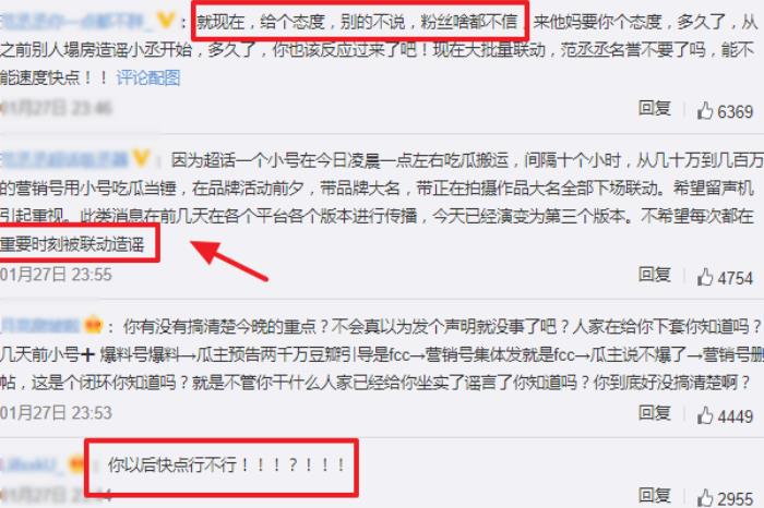 有关传言消息从开始的单平台到之后很多平台出现,并且出现多个版本衍生,粉丝都怀疑是有人故意挑事,并且是有组织的黑范丞丞,但最开始范丞丞工作室对此没有理会,到近期引发众人关注后才开始解决。