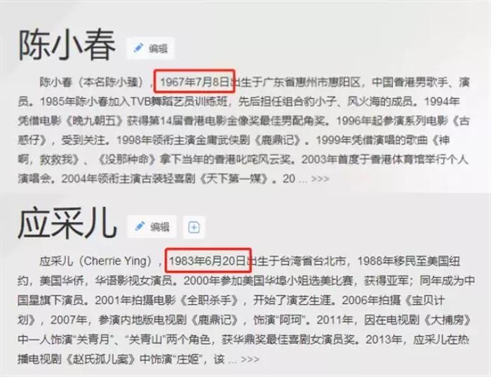 不查不知道,一查吓一跳。原来我们的春哥是1967年生的,和1983年出生的应采儿足足相差了16岁。难怪连应采儿自己都吐槽可以和陈小春演父女了。