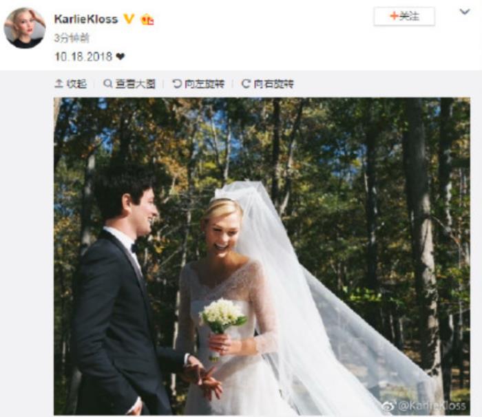 26岁国际超模小KK(KarlieKloss)在社交媒体上上传了一组婚纱照,宣布自己和Joshua Kushne结婚了!