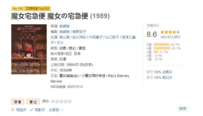 这部1989年的动画讲述了一个奇幻的故事,一个意气风发的小女孩琪琪,想要成长为一个成熟的女巫。但是他身边只有一只黑猫吉吉,她们飞到了一个遥远的城市,开始了送快递的服务,当然是用扫帚送。