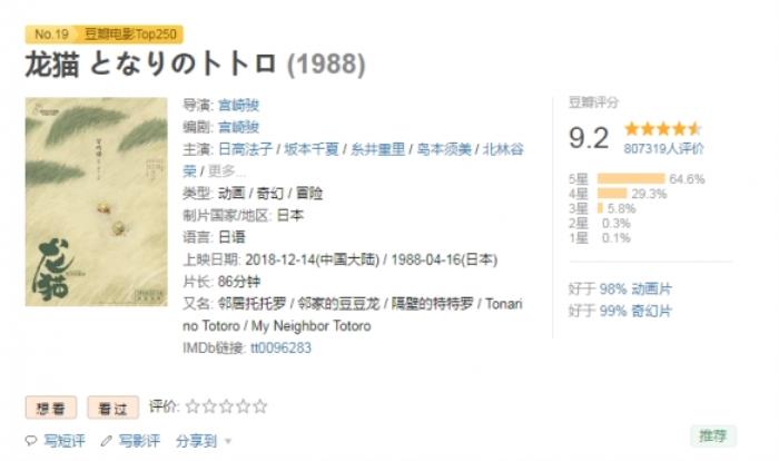 虽然文化的差异,让《龙猫》在日本外的国家容易造成认同感的缺失,但是电影的家庭主题和面对困难时的勇气使它成为一部完美的家庭影片。