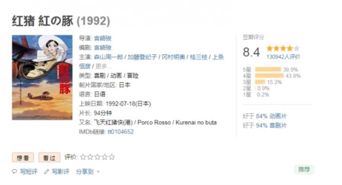 《红猪》被公认为是宫崎骏最古怪的电影。罗森是一战中意大利空军的王牌飞行员,但却被施了魔法变了一头猪。虽然变了猪,但罗森还是继续他的老本行,成了一位赏金猎人,专门打击在亚地里亚海空域作恶的空中劫匪。