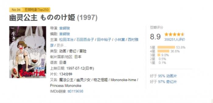 这可能是宫崎骏最好的一部作品。它讲述了一个非产怪异的让人细思恐极的故事,动画中有一些非常可怕的,然人不寒而栗的反派。但是动画充满了宫崎骏要表达的环保意识,以及对人性、贪婪自私的讽刺,也可从看到独立成长的重要性、甚至是人与自然的和谐。该片获第75届奥斯卡金像奖最佳动画长片。