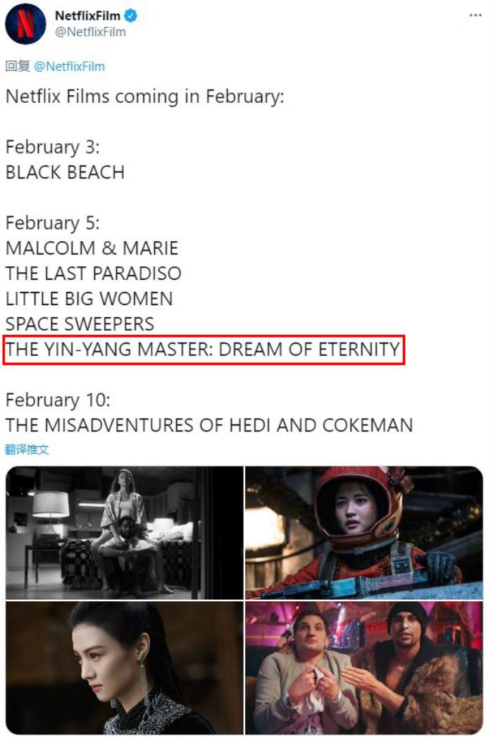来自Netflix官方发布的消息,由郭敬明执导的奇幻电影《阴阳师:晴雅集》将于2月在Netflix上线播出,该片的英文名为《The Yin-Yang Master: Dream Of Eternity》。