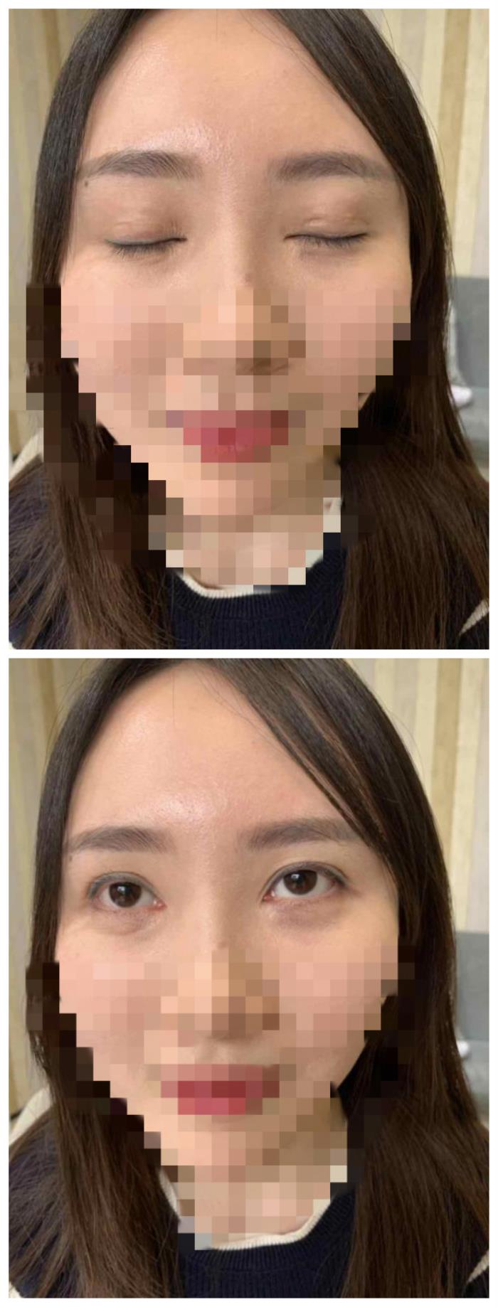 这是我修复前闭眼的样子,可以看到很明显的瘢痕增生