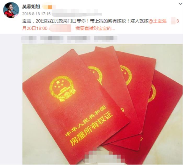 早在2016年时,她就做了一件非常大胆的事——对王宝强表白。她宣称会带上所有嫁妆,并且晒出了自己的房本、车钥匙、银行卡等等。虽然只是一厢情愿,但也能看出她当时已然身家不菲。