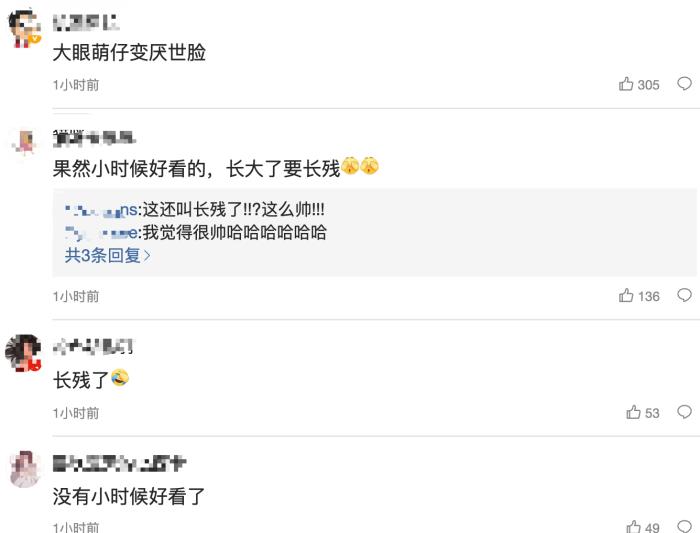 因为小时候实在太惊艳,所以虽然蔡志强现在的颜值也不低,但还是让一些网友感到失望,评论表示长残了,"大眼萌仔变厌世脸"。