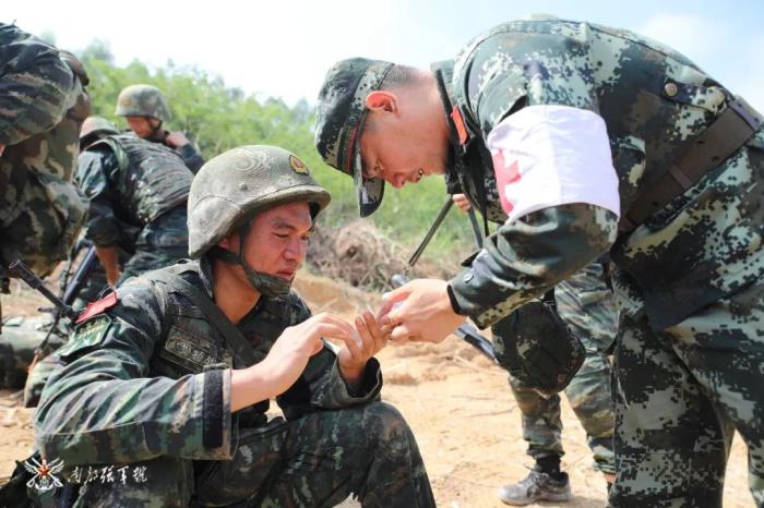 陈康是中队的一名卫生员,别看他表面上柔柔弱弱,在面对“敌人”时可不心慈手软,而在战友面前,他又会毫不掩饰地展示出内心最温柔的一面。中队战士在训练时难免会有些磕磕碰碰,每次战友受伤时,他脸上的刚毅就会短暂消失,取而代之的是无尽的深情,仔细为战友止血包扎。