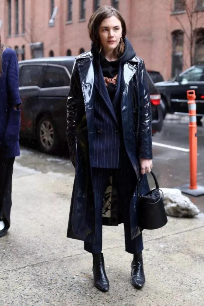 今年最独特的一种风格搭配,就是外套加外套的双重组合,风衣整体会显得比较随性,若想减少这种感觉,西装外套与风衣的搭配再合适不过,西装外套的整体材质会显得非常的高级,但是款式会偏刻板一点,两者相结合,却显的异常协调。