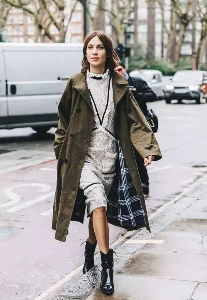 再者,这种组合搭配,最适合身材比较胖的女生选择,藏肉的效果是最佳的。如果你是腰部赘肉比较多的女生,建议选择那种收腰款式的连衣裙,能修饰腰身,提升腰线,还能打造一双大长腿。那么如果是胯宽的女生的话,建议选择a字版型的连衣裙,或者是风衣是x型的,这样就能修饰臀部的曲线,从而达到显瘦显高的效果。