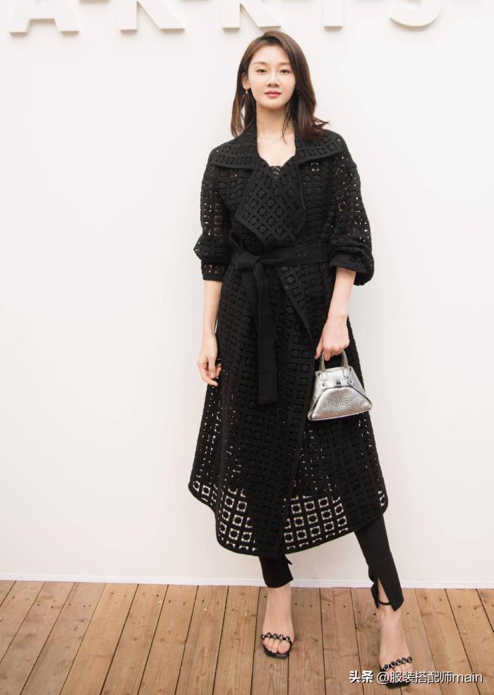如果是单纯用白风衣搭配黑色阔腿裤的话,气势是有了,却总感觉少了些吸引人的地方。姚晨穿了双金色恨天高照亮全身,耀眼的质感和项链也有呼应的意思,大女人的味道好足。