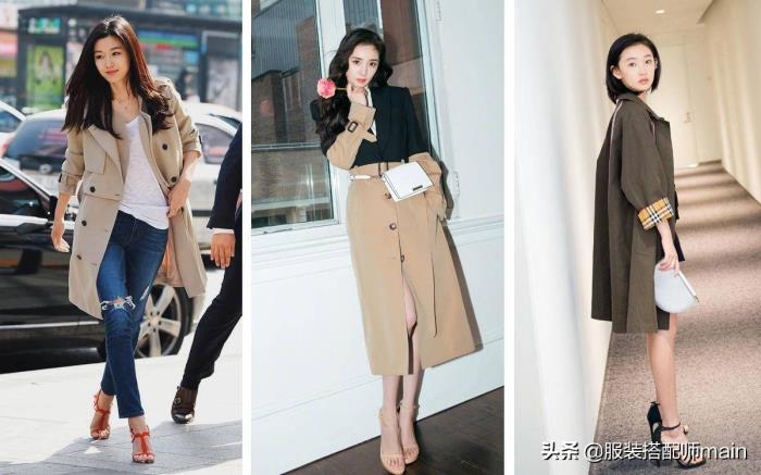 风衣可以说是许多时髦精过秋的必备单品,趁着现在中午还有些热, 可以搭配高跟凉鞋;温度再低,还能换成尖头细高跟和高跟靴,造型飒气走路带风;比穿运动鞋更有范儿。