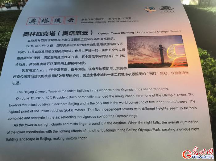 6月21日,黄昏,奥林匹克塔简介图。(张晓荣 摄)